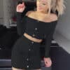 1 review for Fashion Trend Woman Sexy Off Shoulder Set Solid Button Bodycon 2 Pcs Sets Women Long Sleeve Top And Skirt Summer Autumn Sets