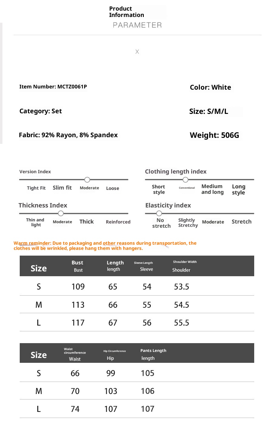 Weight: 506g, 92% Viscose, 8% Spandex